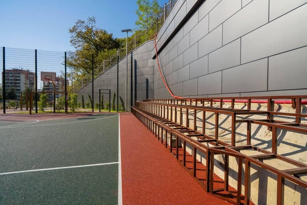 Современные комбинированные фасады из керамогранита и алюминия формируют статусный экстерьер с повышенной износостойкостью.