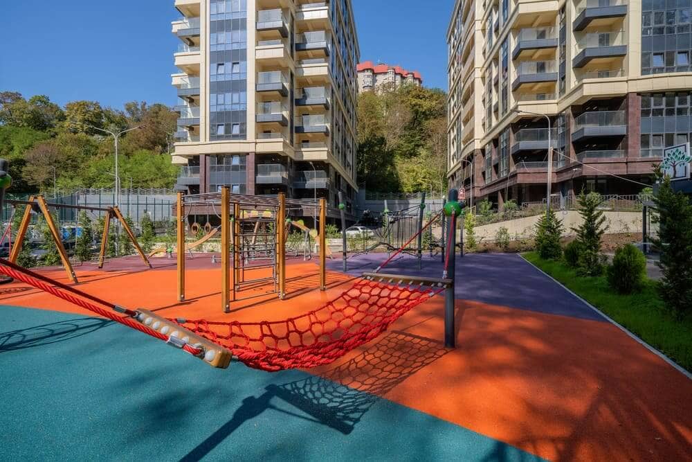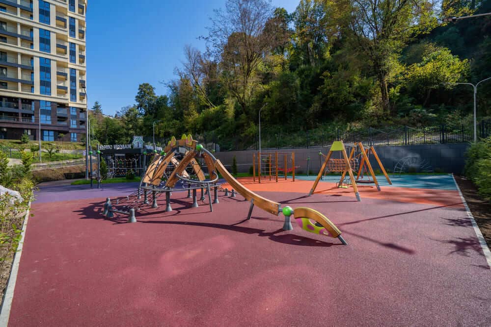 Продуманная инфраструктура безопасности включает детские площадки с мягким покрытием и игровые зоны в поле зрения камер, создавая комфортную среду для жизни без компромиссов.